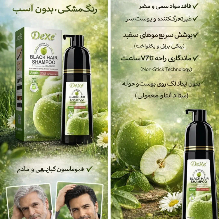 شامپو رنگ دکس یه محصول با مواد طبیعی و گیاهی است که شامل عصاره سیب سبز ، چای سیاه ، رزماری است و هیچ گونه آسیبی به موها را نمیرساند و رنگ بسیار طبیعی به موها میبخشد ، به هیچ گونه پوست دست و صورت رنگ نمیگیرد، دارای رایحه بسیار خوشبو که تا ۷۲ ساعت ماندگاری دارد ، استفاده از این محصول بسیار آسان است ، ماندگار رنگ تا ۲ ماه است.